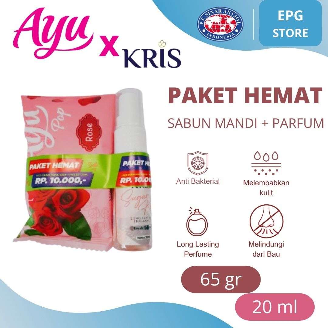 1 PCS AYU BATH SOAP ROSE 65GR + 1 PCS KRIS EAU DE TOILETTE SUGAR KISS 20ML (36 BANDED PACKS)